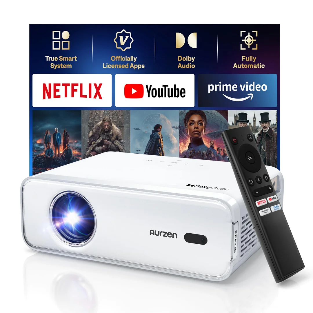 - Built-in Smart TV Operating System with Officially Certified Streaming Apps: The Aurzen EAZZE D1 smart projector comes with a built-in smart TV OS, offering access to millions of videos, including officially certified content from NetfIix, Prime Video, and YouTube without using an extra TV stick. Additionally, explore endless entertainment from hundreds of built-in app or watching videos online with features like 'My App', 'APP STORE', and 'Open Browser'. You can not download other streaming apps. If you want to get more Apps, please choose the GTV Version.