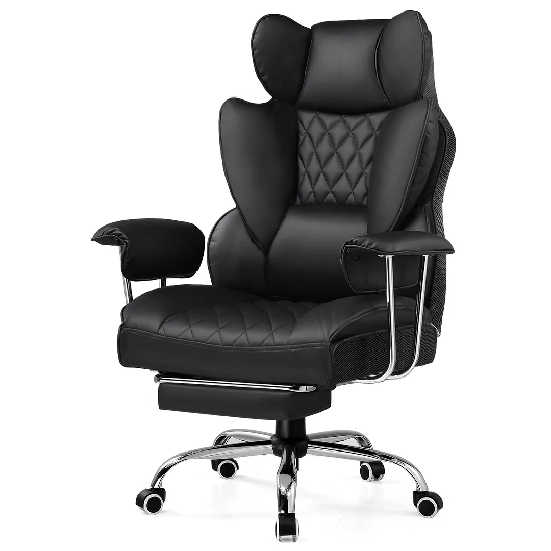 - 【Sofa-like Seat】 The executive chair features a pocket spring lumbar support for elasticity and heat dissipation during prolonged sitting. The widened seat, free of restricting side wings, along with an adjustable footrest, allows comfortable seating in any position. It's as casual and free as sitting on your own sofa